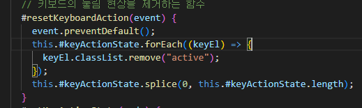 기존의 버튼 이벤트 호출을 금지하고 key를 입력할 때 key element 를 담아놨던 배열을 순회하면서 적용됐던 효과를 지운다.