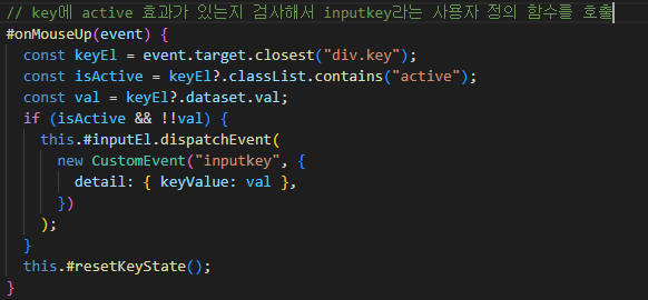 그리고 이 onMouseUp이라는 함수에서 기능을 분리하기 위해서 사용자가 정의한 이벤트를 호출시킬 수 있는 dispatchEvent 함수를 이용했다.