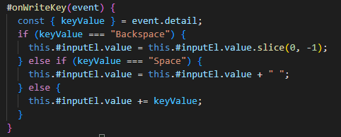 이 함수를 이용해서 이전에 연결해놨던 사용자 정의 함수인 onWriteKey함수를 직접 호출했다.