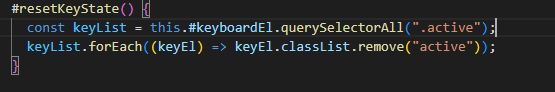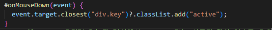 왜 querySelectorAll을 사용했냐면 입력창에 키를 마구 누른 상태에서 마우스를 때면 active가 그대로 남는 오류가 있기 때문에 사용했다.